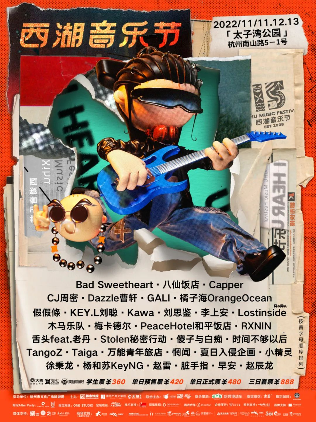 11月11日、12日、13日,万能青年旅店、KEY.L 刘聪、赵雷、舌头乐队、杨和苏KeyNG、木马乐队、惘闻、夏日入侵企画、GALI、Stolen秘密行动、橘子海Orange Ocean等音乐人将在杭州西湖太子湾公园,与你一起开启每一个精彩瞬间!