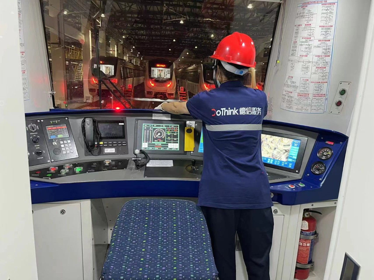 夜晚,主要执行车厢内部座椅、扶手、玻璃、司机室等列车内部的清理、消杀。