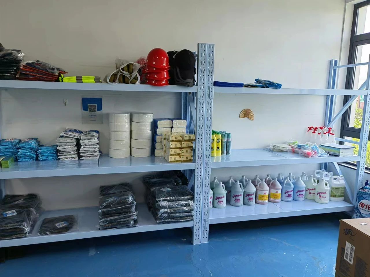 保洁工具按照不同工作区域进行分区放置。