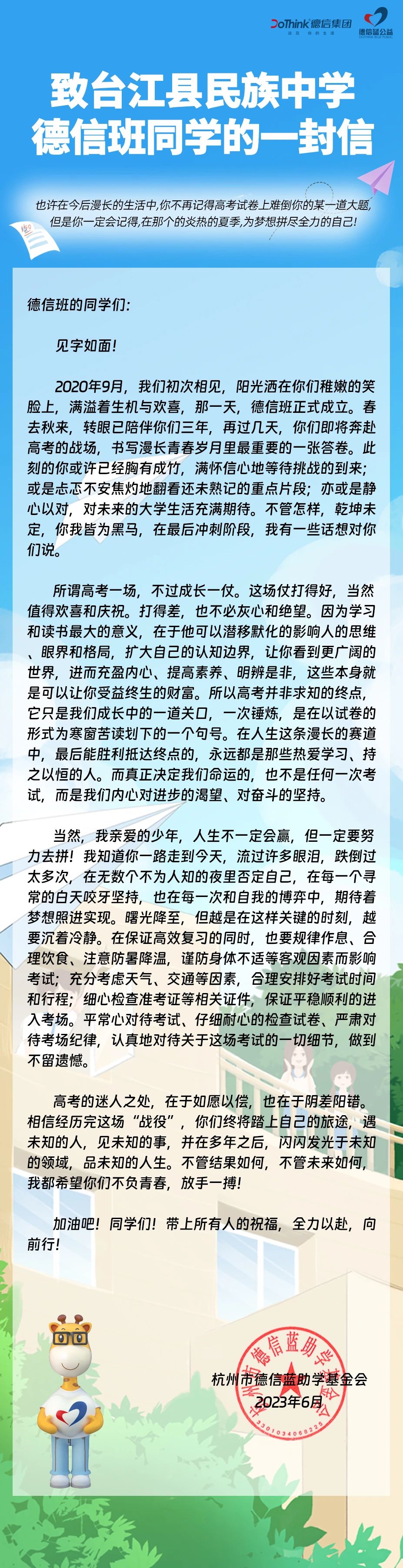 致台江县民族中学德信班同学的一封信